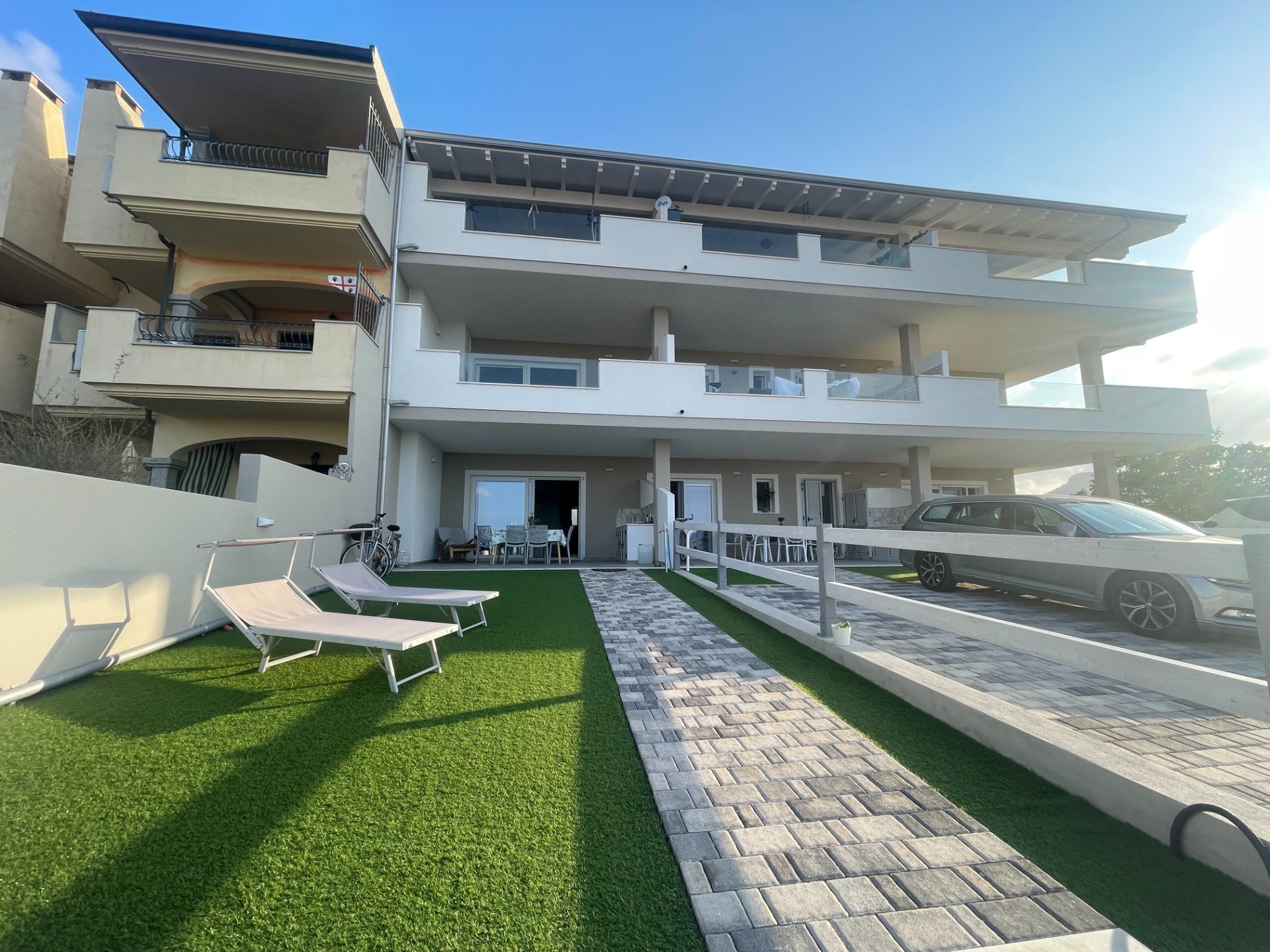 Apartmánový dům, který je rok starý/nový :) v krásné oblasti Valledorie. Apartmán se nachází v dolní části s dvěma terasami a předzahrádkou. Disponuje dvěmi parkovacími místy a krásným výhledem na moře a olivové háje. Na dvorní terase je venkovní kuchyně. Apartmán o rozloze 100 m2 má velký obývací pokoj s plně vybaveným kuchyňským koutem, technickou místnost, dvě prostorné ložnice a dvě moderní koupelny vybaveny prostornými sprchovými kouty s masážními hlavicemi, wc a bidety. V apartmánu se může ubytovat až 8 osob. Samozřejmostí je možnost dětské postýlky zdarma.